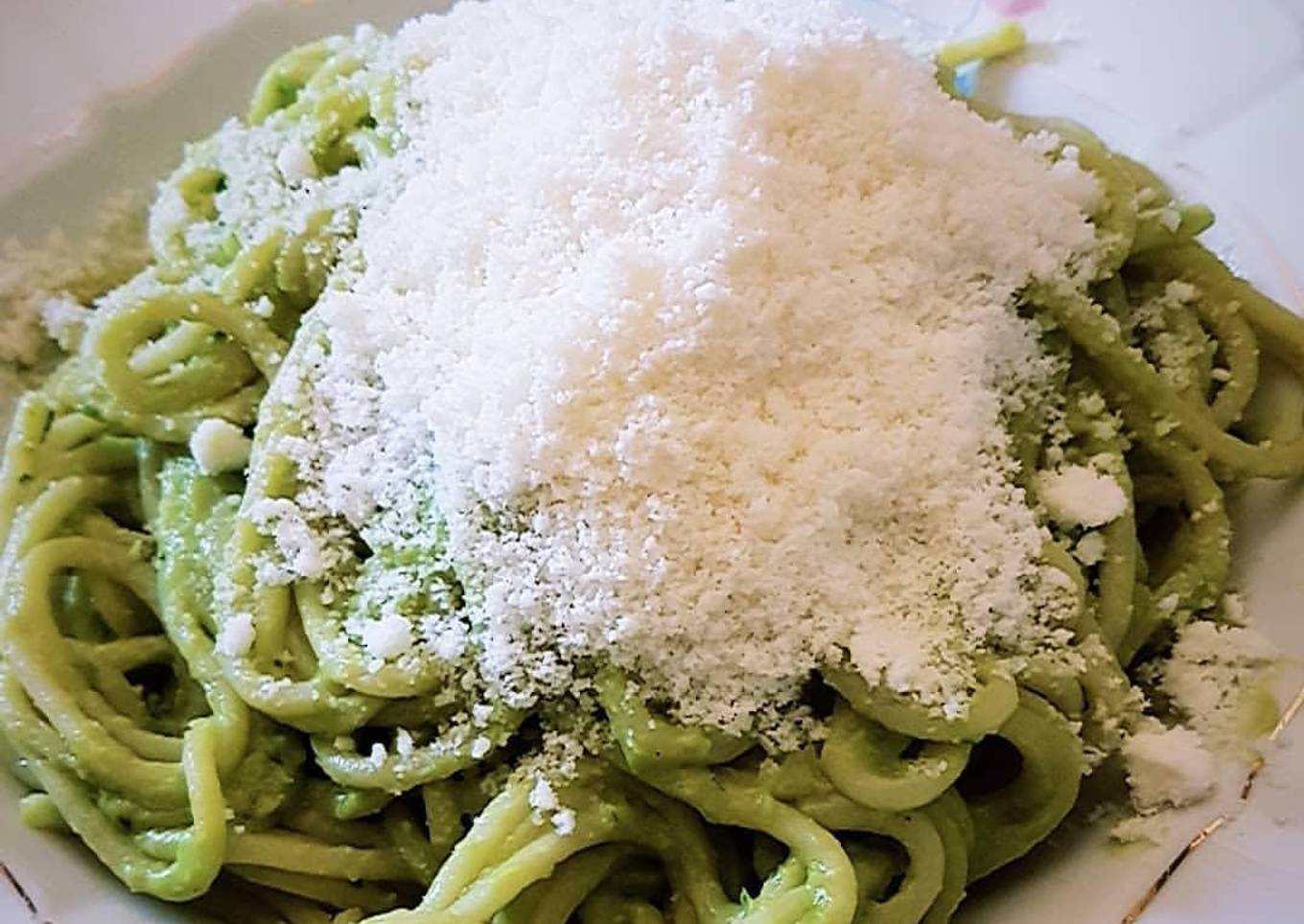 - Y ya tendríamos los buenísimos espaguetis en salsa de aguacate, a mi me gusta añadirle queso el polvo por encima😊