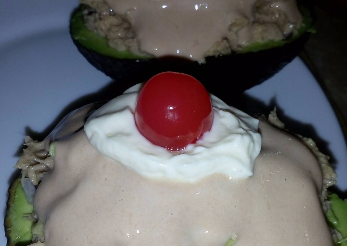 - Poner todo en bol añadir el atún y el aguacate y remover rellenar los aguacate y hacer salsa rosa con o sin Tabasco y rociar