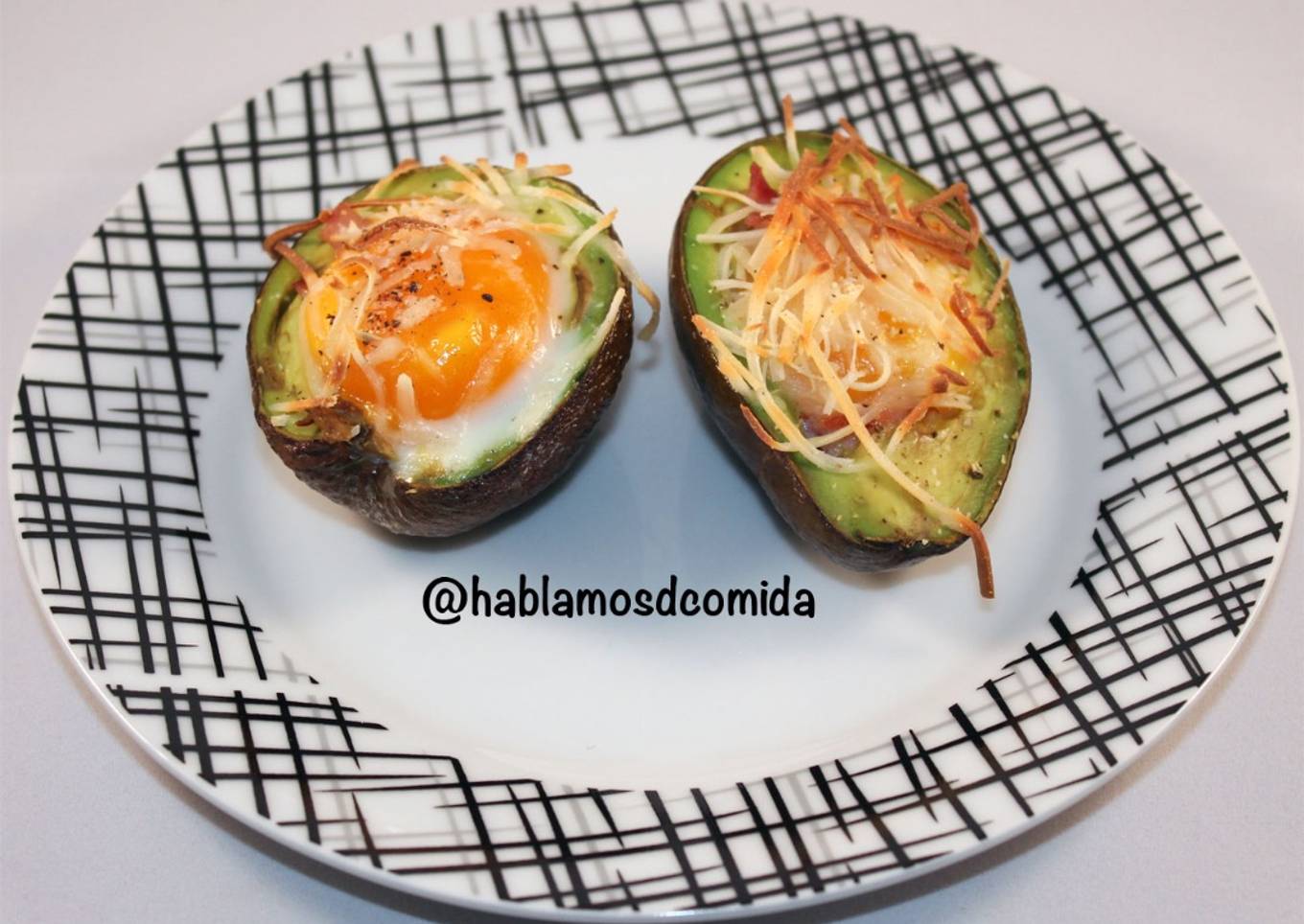 - Los colocamos sobre una bandeja de horno y dentro del agujero del aguacate rompemos cada uno de los huevos.