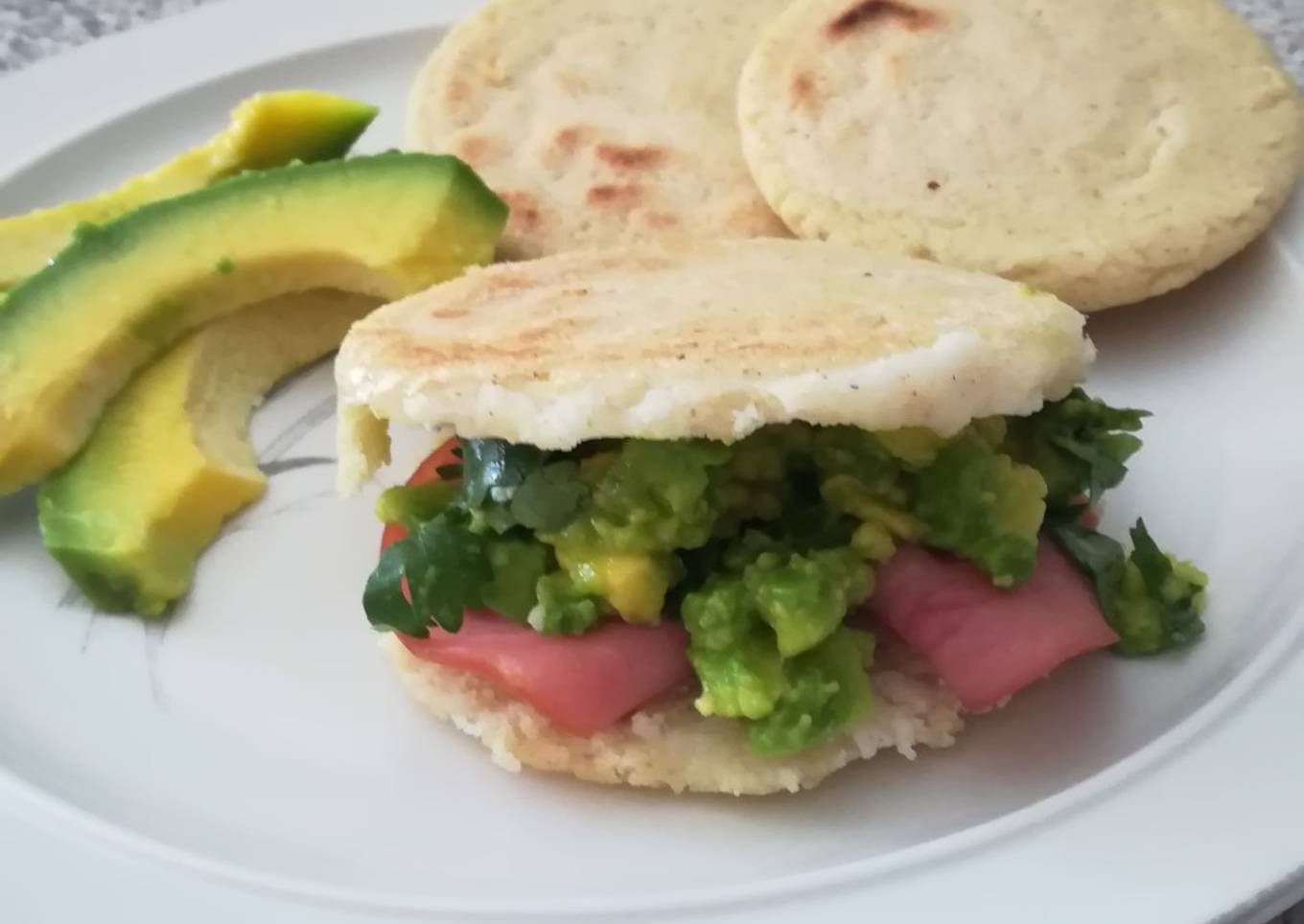 Arepas Rellenas de Aguacate, Cilantro y Jamón