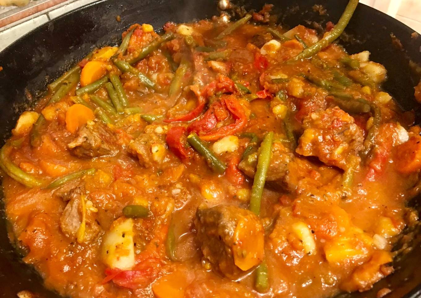 Hello everybody, it's Jim, welcome to my recipe page. Today, I'm gonna show you how to make a special dish, Guisito de carne para el invierno con chaucha, morrón, batata, zanahoria. It is one of my favorites food recipes. This time, I will make it a little bit tasty. This is gonna smell and look delicious.