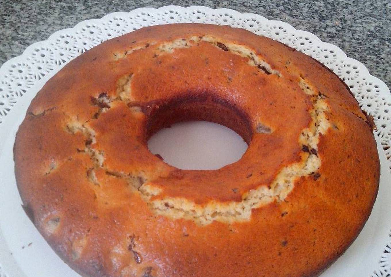 - Colocar en molde enmantecado y enharinado, (yo usé uno de 28 cm de diámetro) Cocinar en horno moderado 40 o 45 min aprox.