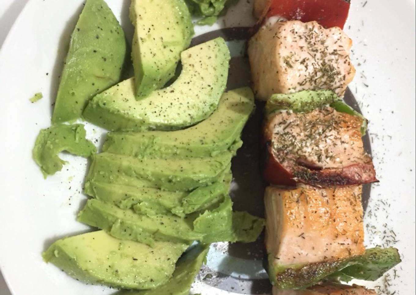 Brocheta de salmón acompañada de aguacate 🥑🍡