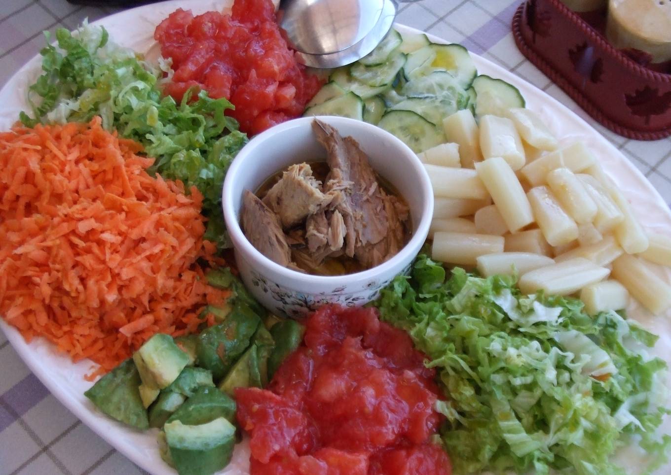 - Distribuir los ingredientes en una fuente grande y acompañar con las salsas aparte.