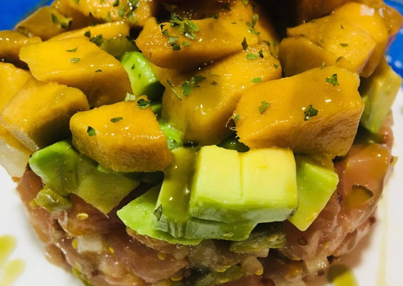 Hello everybody, hope you are having an amazing day today. Today, I will show you a way to make a special dish, Tartar de salmón aguacate y mango. One of my favorites food recipes. For mine, I will make it a bit tasty. This is gonna smell and look delicious.