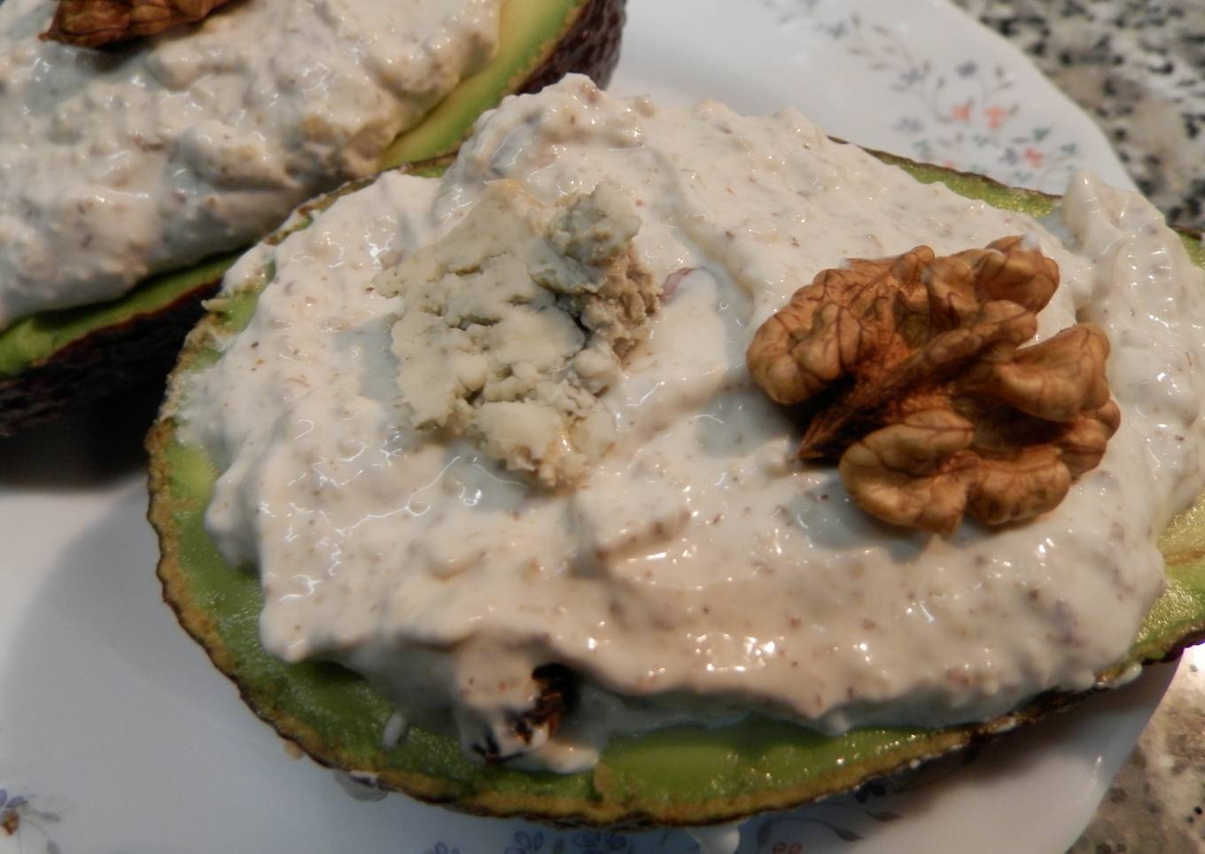 Unos aguacates con una crema de nueces mezclada con queso gorgonzola deliciosos.