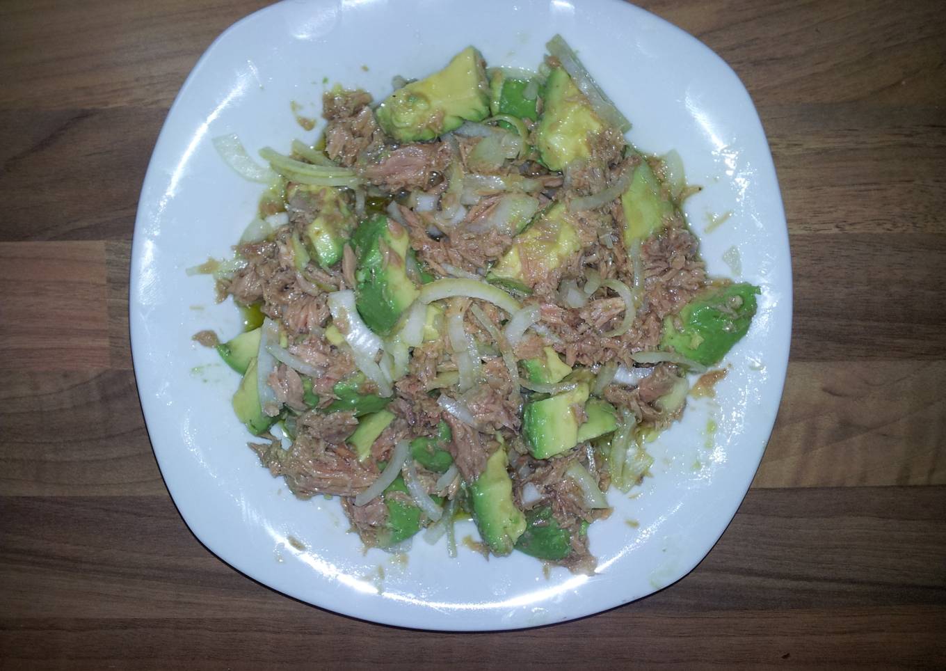Atún con aguacate y cebolla