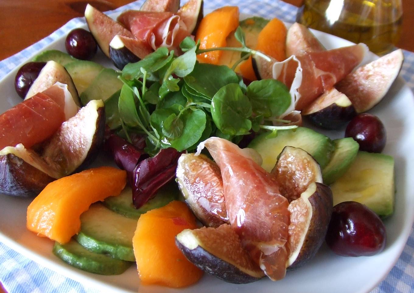 Este es un plato muy especial porque está elaborado con frutas, jamón y un aderezo delicioso. Los higos no son baratos, pero yo calculo uno por persona porque son muy saciantes, de esta forma el plato no resulta muy caro.