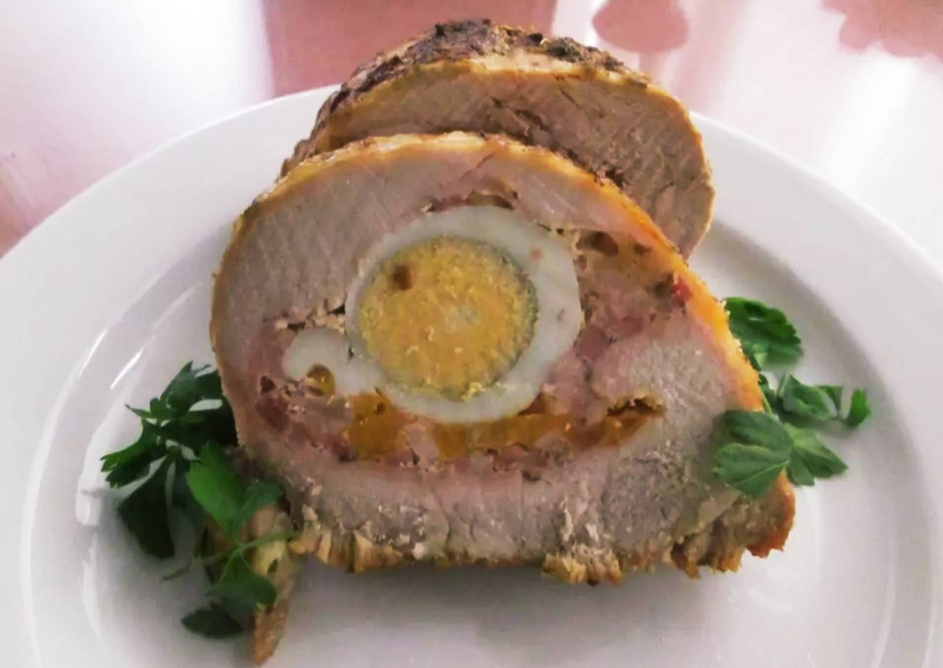 Lomo de cerdo relleno de queso, beicon y huevo