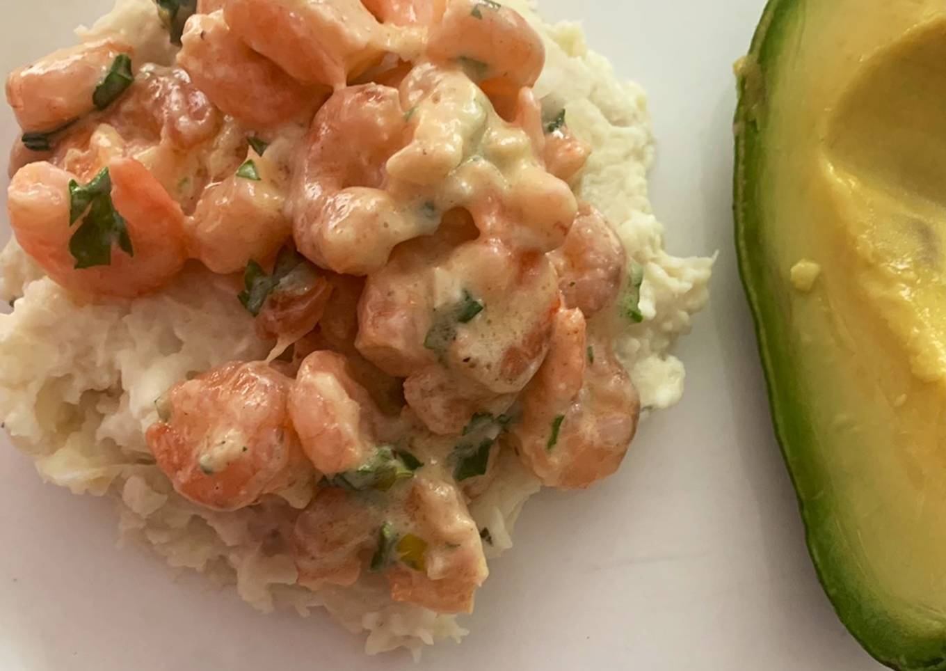 La primera vez que hago puré de ñame, seguí mi instinto y nos encantó, lo acompañé con unos camarones al ajillo y nuestro infaltable aguacate.