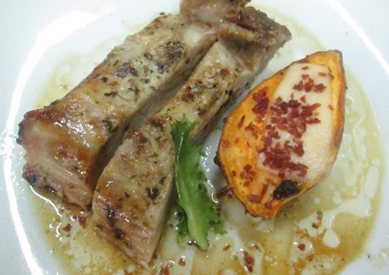 Con estas batatas exquisitas acompañé un trozo de carne de cerdo muy tierno y sabroso.